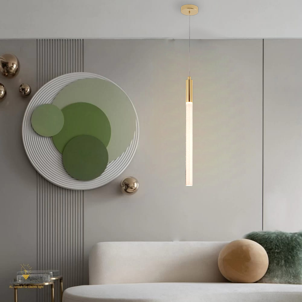أضف لمسة من البريق العصري إلى ديكورك مع هذه الثريا الكريستال المفردة بتصميم مودرن أنيق. تتدلّى الكريستالات اللامعة بأسلوب راقٍ يعكس الضوء بجمال، بينما يضفي الهيكل البسيط لمسة من الحداثة والتوازن. مثالية للإضاءة فوق طاولات جانبية، زوايا الجلوس، أو ممرات راقية.
